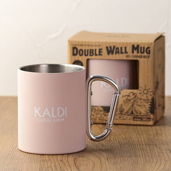 オリジナルのステンレス製ダブルウォールマグです。持ち手がカラビナになっていて、バッグなどに付けてお使いいただけます。カジュアル過ぎない淡い色合いで、アウトドアにはもちろん、普段使いにもおすすめです。
