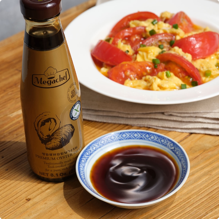 燻製して旨みをギュッと凝縮させた牡蠣を、化学調味料を加えずに砂糖、塩、コーンスターチとじっくり煮詰めて作ったコク深く、丸みのある味わいのオイスターソースです。炒め物やスープに加えるだけでお店の味に!