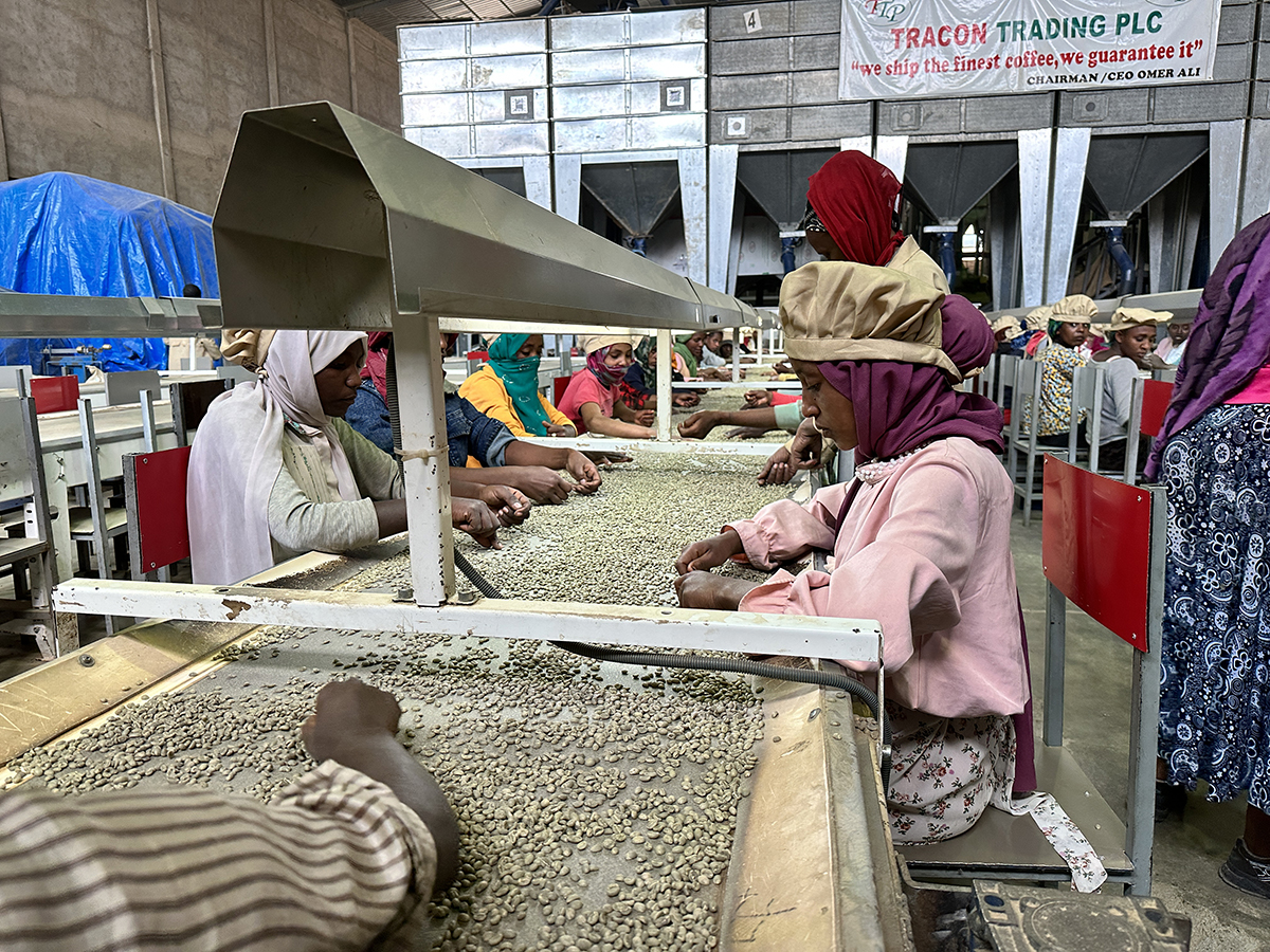 アダドでは、周辺農家から集められたコーヒーチェリーを熟度が揃うよう選別し、屋外に設置された大きな乾燥棚(アフリカンベッド)でしっかりと乾燥させ、脱穀後さらにハンドピックによる選別を行います。