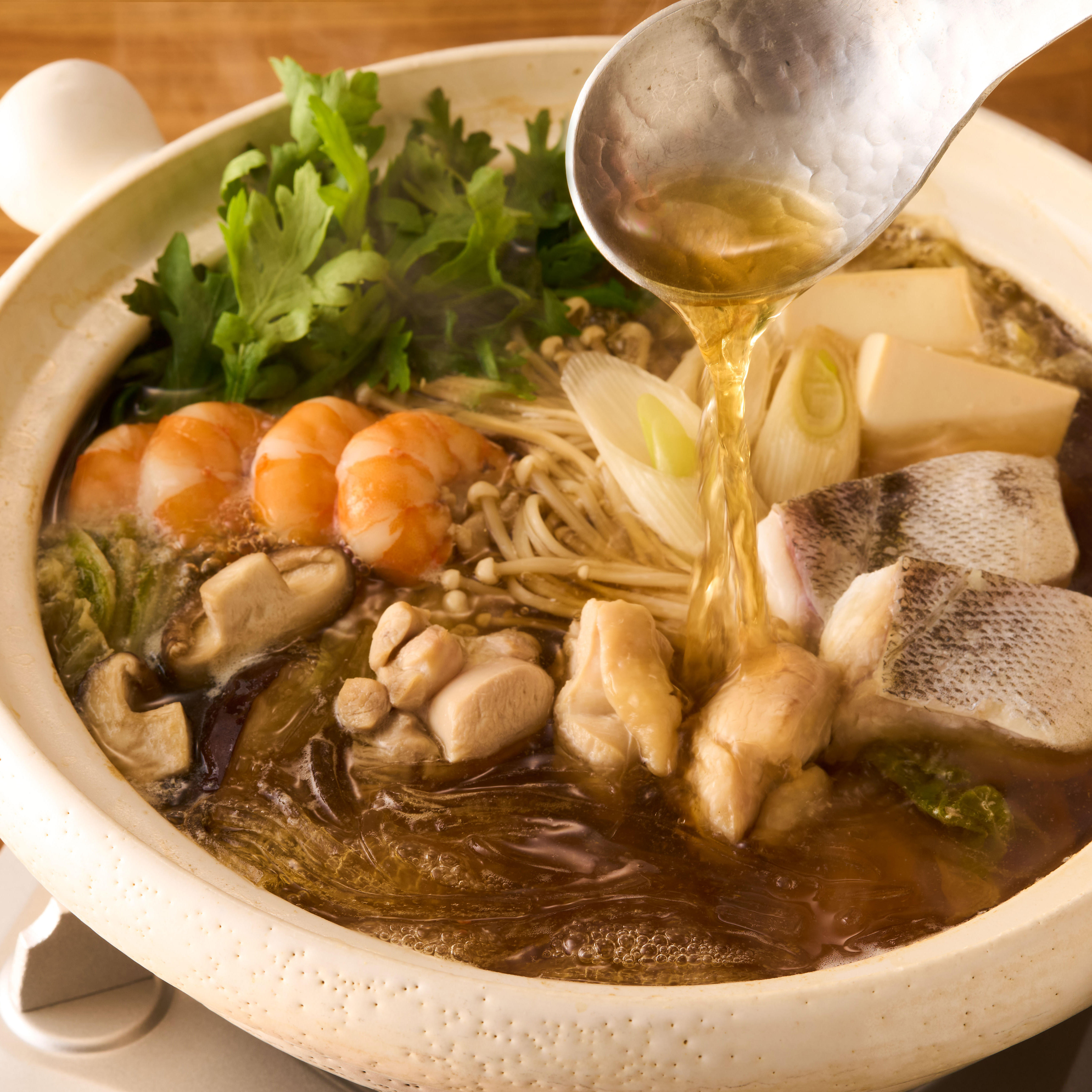 コク深いのどぐろ出汁を効かせた、寄せ鍋つゆ。