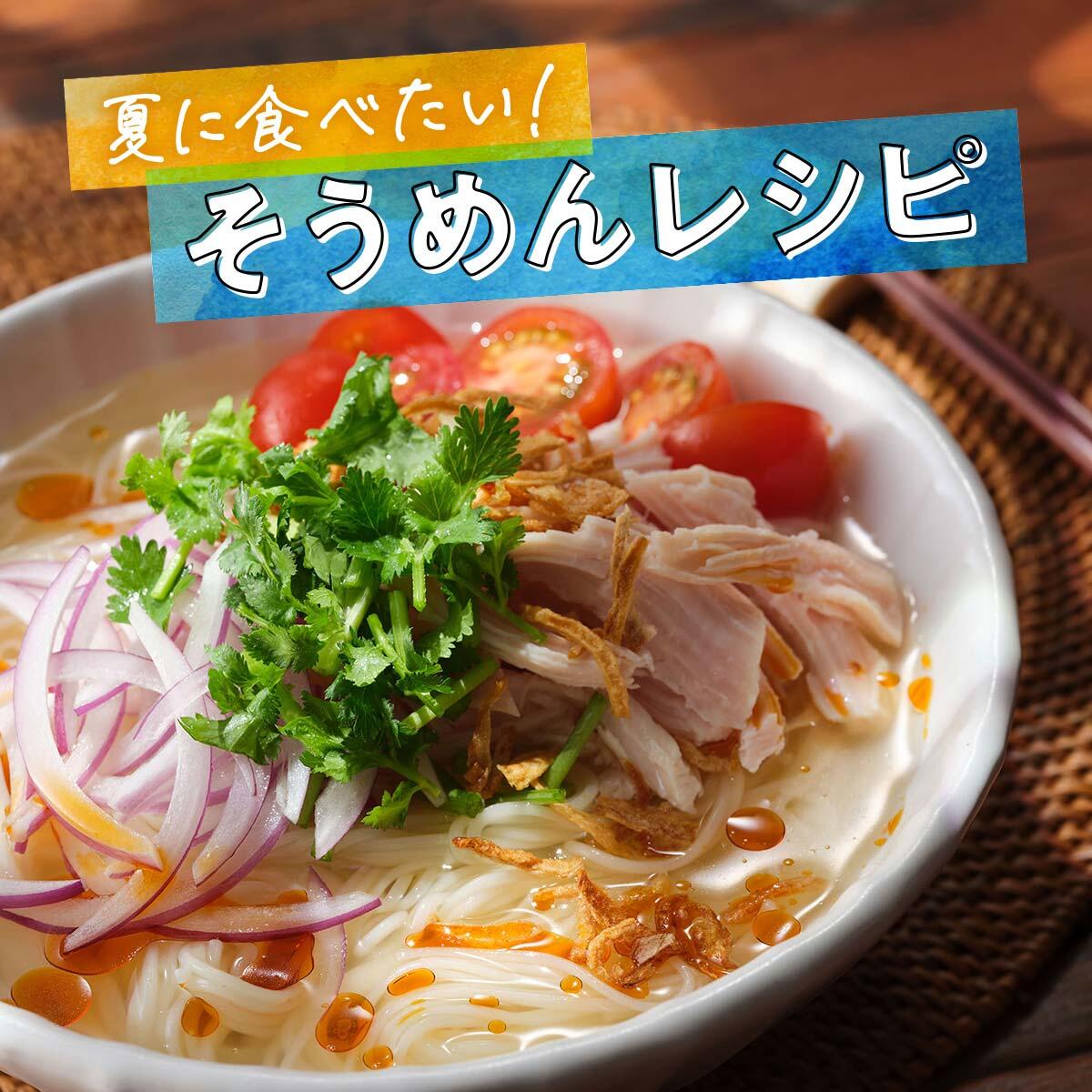 夏に食べたい!そうめんレシピ 簡単まぜるだけ!さば缶と青じそのトマトそうめん 10分 相性のいいトマトとさばの缶詰を使って手軽にできる洋風そうめんです。爽やかなレモン果汁とオリーブオイルの風味が食欲をそそります。 レシピを見る エスニック風そうめん 10分 ナンプラーの旨みとレモンの酸味に、フライドオニオンの香ばしさと食感、ラー油のコクと香りがアクセントになった爽やかなエスニック仕立てのそうめんです。 レシピを見る 濃厚旨辛!冷やし豆乳坦々そうめん 10分 暖かい季節にぴったりの冷やし豆乳坦々そうめんです。濃厚な豆乳を使用し、ピーナッツバターでコクのある風味豊かなスープに仕上げました。 レシピを見る シークヮーサーの冷やしぶっかけそうめん 10分 ツナの旨味と青じその香り、シークヮーサーの清涼な酸味が織りなす夏にぴったりのそうめんです。 レシピを見る